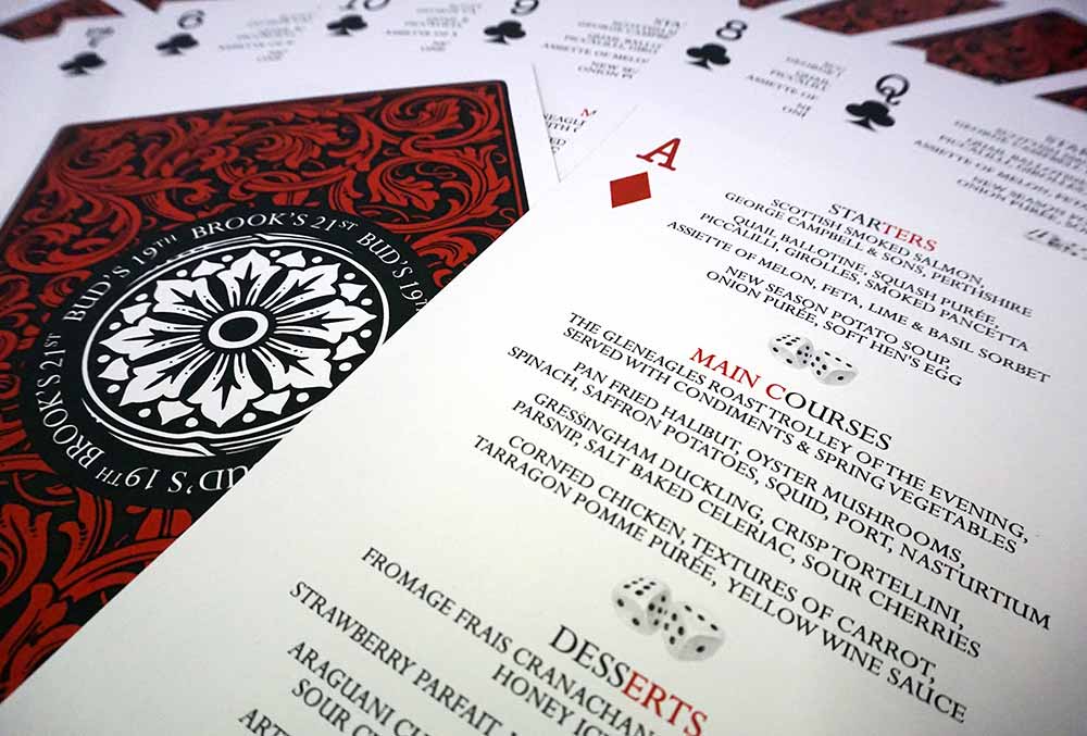 A modern themed Casino James Bond Bar Mitzvah menu